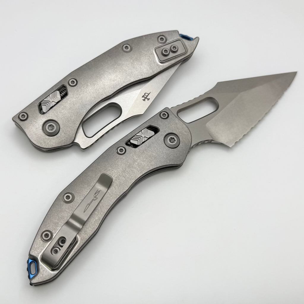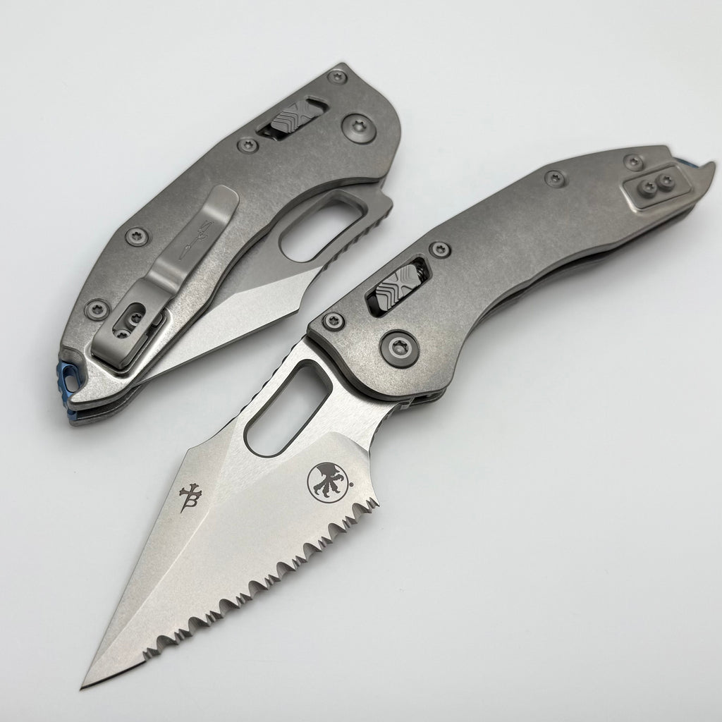 Microtech Marfione Select Manual Stitch RAM LOK Titanium Handles & Full Serrated Stonewash M390MK w/ Double Vapor Blast & Blue Accents 169RL-12MS2