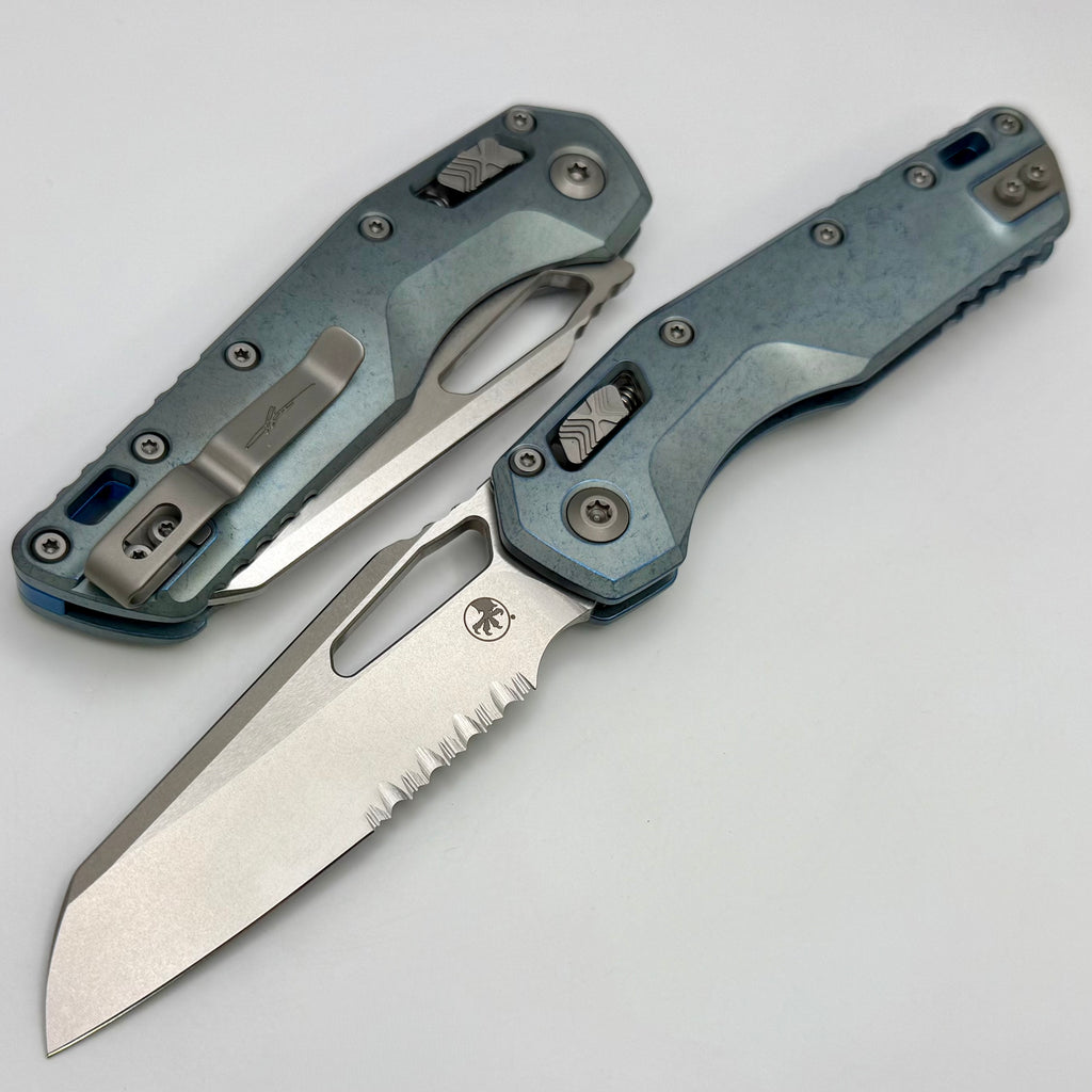 Microtech Marfione Select MSI RAM LOK Ice Blue Titanium Handles w/ Double Vapor Blast & Blue Accents & Part Serrated Stonewash M390MK 210-11MS6