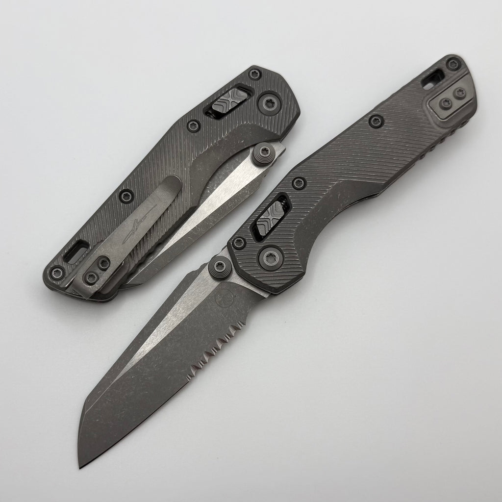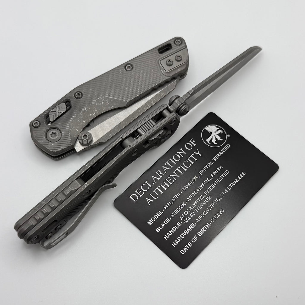 Microtech Marfione Select MSI RAM LOK Mini Fluted Titanium Handles w/ Double Vapor Accents & Apocalyptic Part Serrated M390MK 210M-11APFLMS1