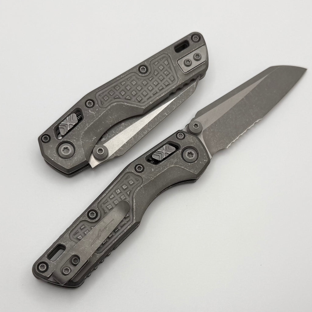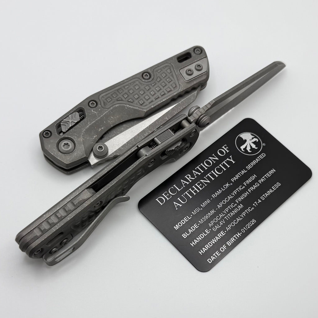 Microtech Marfione Select MSI RAM LOK Mini Frag Titanium Handles w/ Double Vapor Accents & Apocalyptic Part Serrated M390MK 210M-11APFRMS1