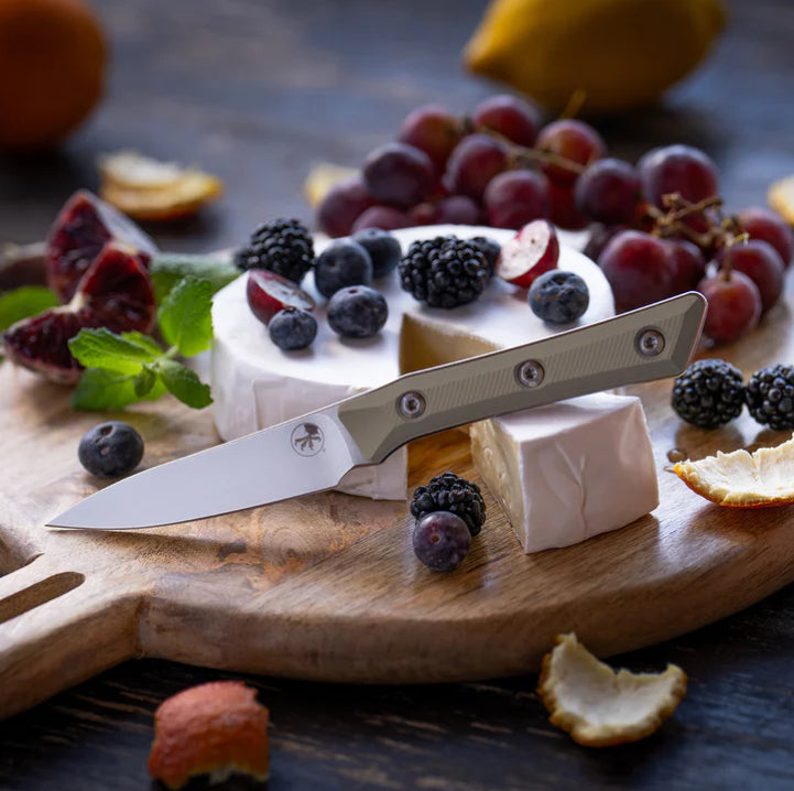 Compact and precise, the 3.5" Paring Knife is a kitchen essential for detail-oriented tasks. Its agile blade excels at peeling, coring, and garnishing, while its sharp tip navigates tight spaces with ease. Perfect for deveining shrimp or slicing small fruit like strawberries, this knife offers unmatched control for delicate prep work.