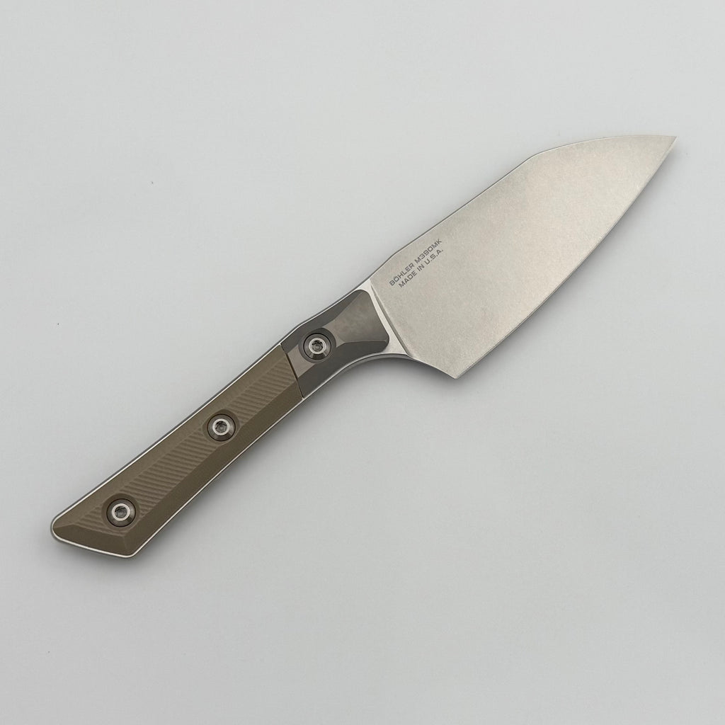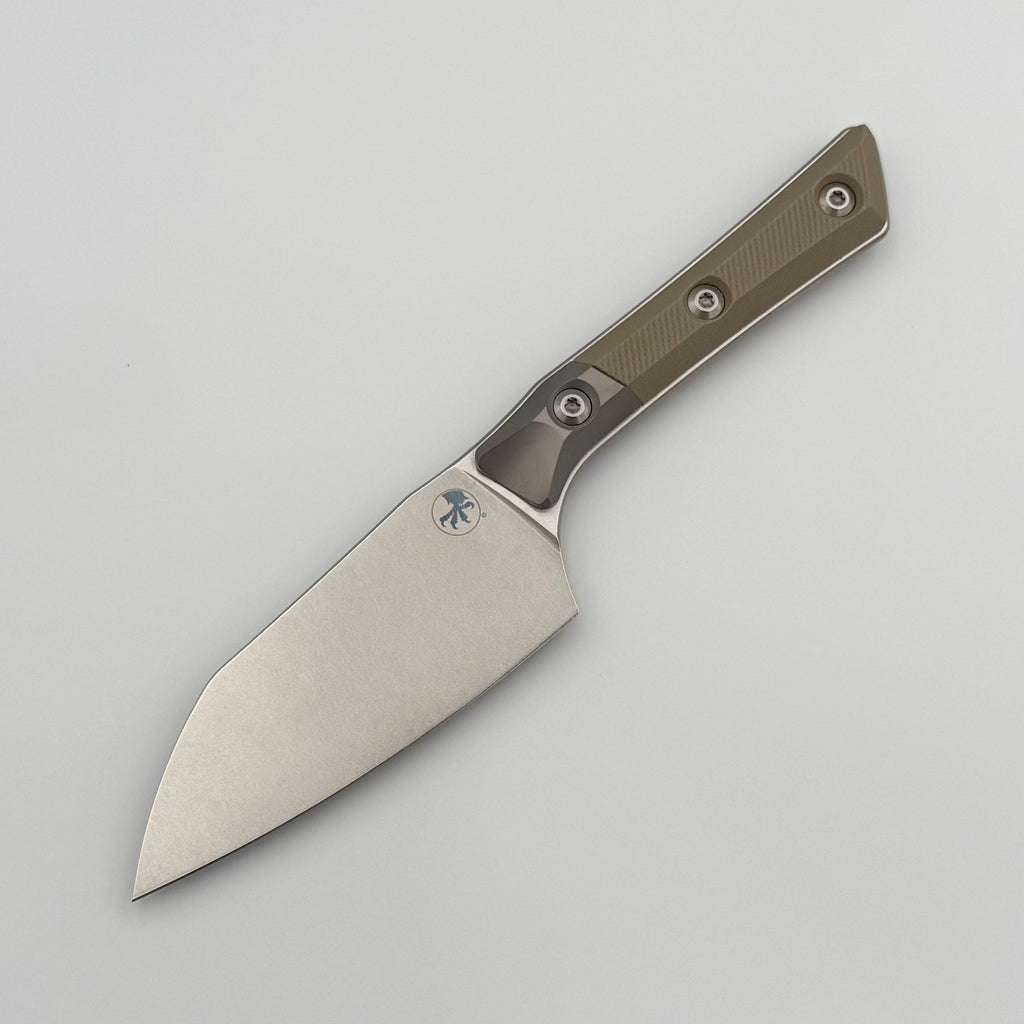 Microtech Santoku 4.2" Tan G-10/Titanium Bolster Handle w/ Stonewash M390MK 3300B-10TA