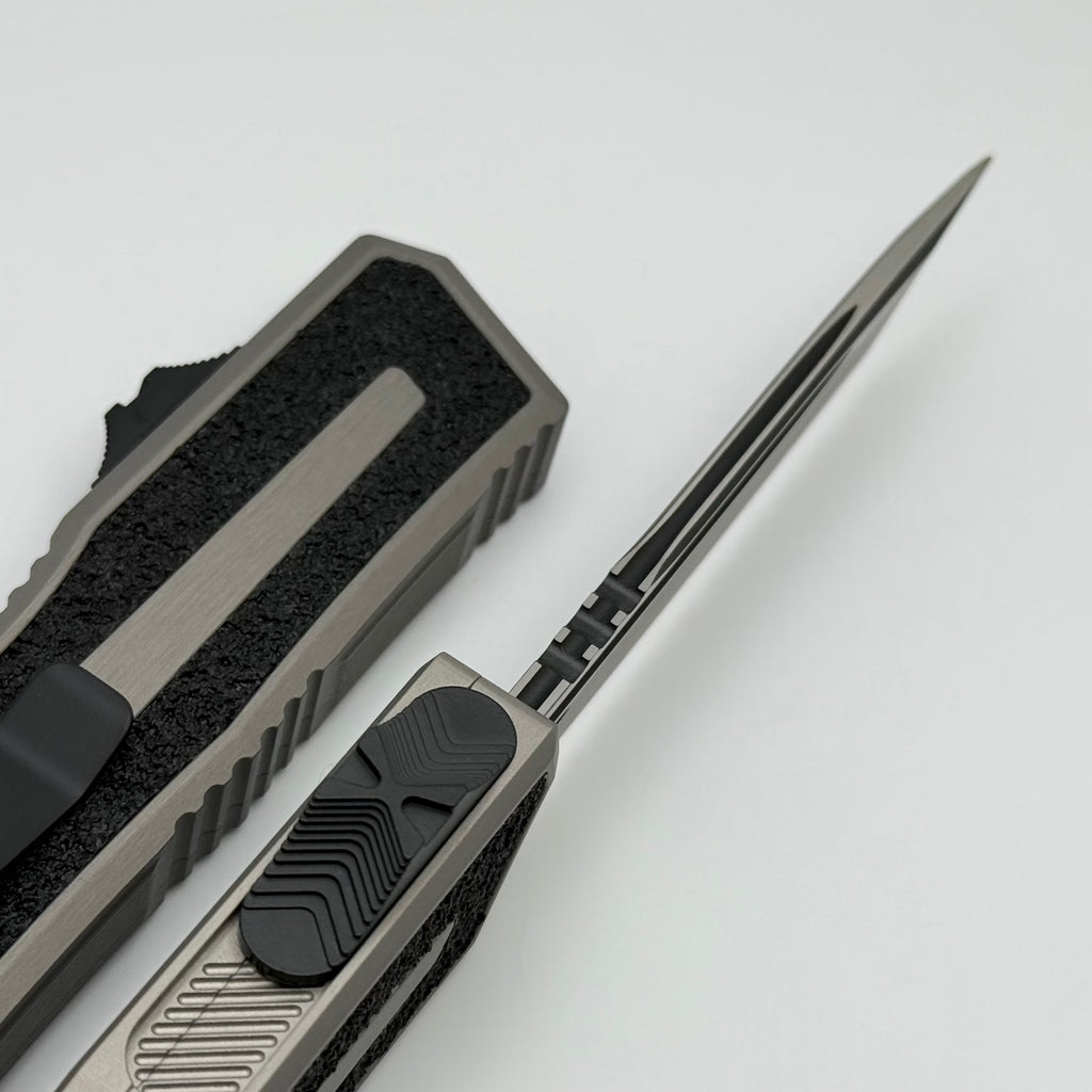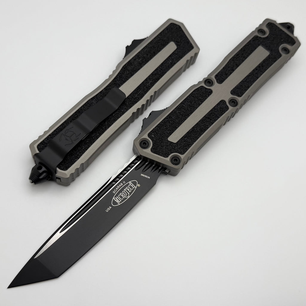 The newly revised Scarab II from Microtech Knives is here! The design of the handle grip tape inlays has been changed from the previous generation. The new OTF drive system makes these knives the smoothest that Microtech has ever produced. Extremely smooth/easy opening and closing. The new switch now rides on a milled platform, this helps break up pocket lint/debris and reduces friction which increases its reliability and lowers the frequency of cleanings. It now features M390MK blade steel. These models are completely redone and are sure to please!