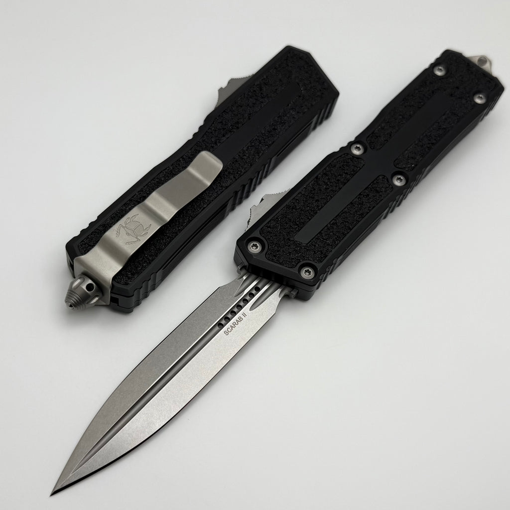 Microtech Scarab 2 Gen 3 D/E Stonewash Standard w/ Black Handle 1280-10