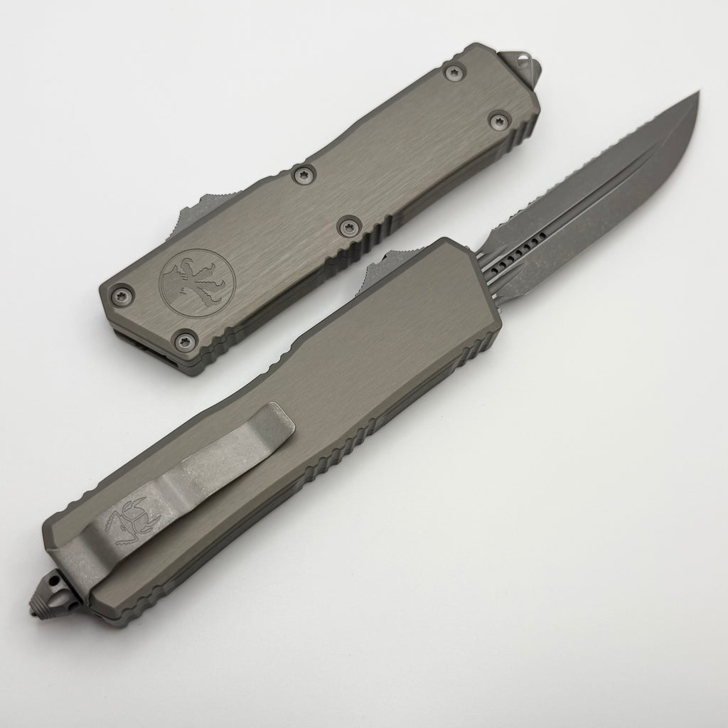 Microtech Scarab 2 Gen 3 Executive w/ Natural Clear Handle & Full Serrated D/E-S Apocalyptic M390MK 1181-12APNC