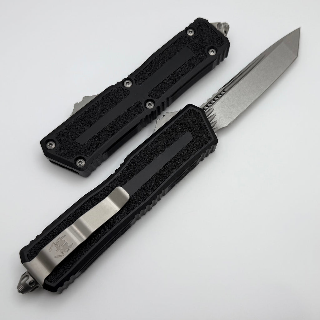 Microtech Scarab 2 Gen 3 Stonewash Spine Fluted Tanto w/ Black Handle 1279-10