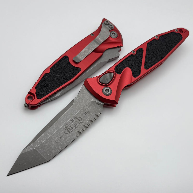 Microtech Socom Elite Auto w/ Apocalyptic T/E Partial Serrated & Red Handle 161A-11APRD