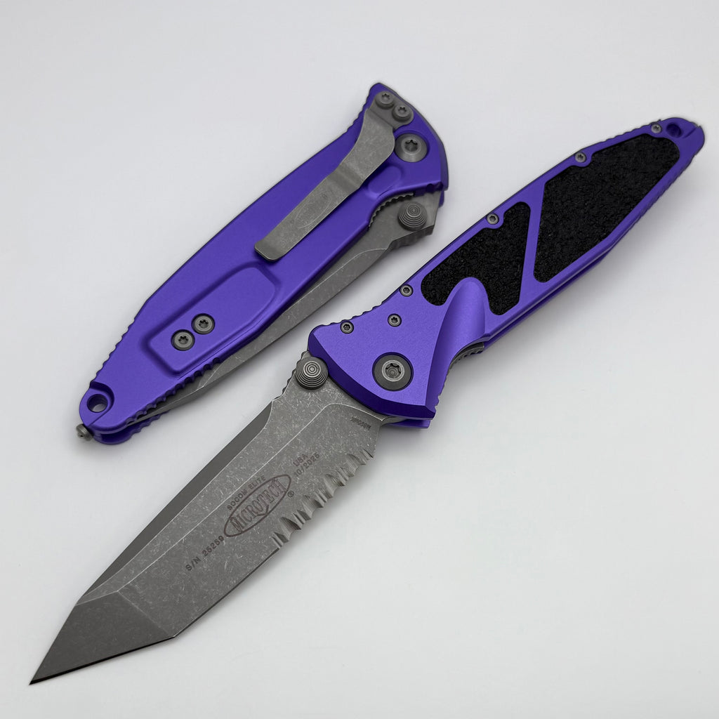 Microtech Socom Elite Manual Tanto Apocalyptic Partial Serrated & Purple Handles 161-11APPU