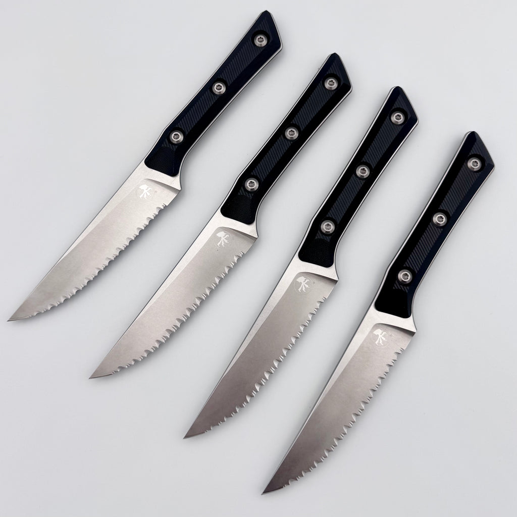Microtech Steak 4 Piece Set Black G-10 Handle w/ Stonewash M390MK 3600-12SETBK