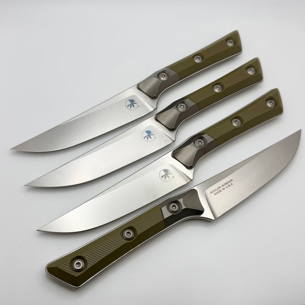 Microtech Steak 4 Piece Set OD Green G-10/Titanium Bolster Handle w/ Stonewash M390MK 3600B-10SETOD