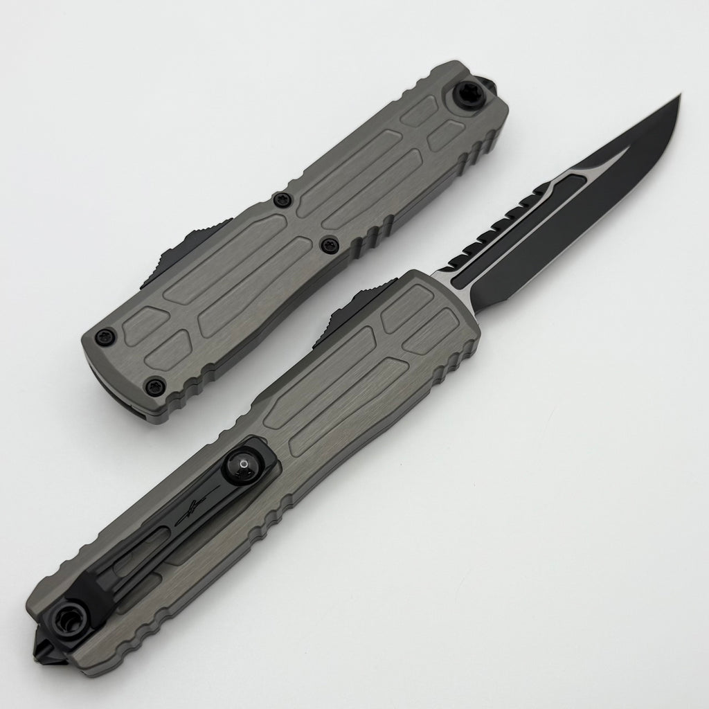 As the flagship model of the Microtech® OTF lineup, this is the final generation of the Ultratech®.  The ZBP Ultratech sets the standard for Out-The-Front technology and this one is sure to please with multiple upgrades. These Zero Blade Play Ultratech's have M390MK blades and stainless steel Torx hardware. They have milled titanium pocket clips with ceramic balls, and the new stainless steel glass breaker. The contoured chassis handle provides a lighter and more ergonomic feel and comes in a smooth, flat finish.