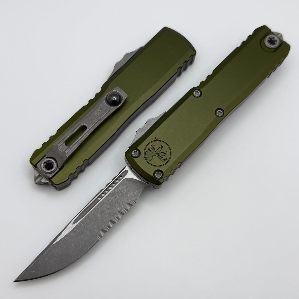 Microtech UTX-85 Gen IV w/ OD Green Handle & Apocalyptic S/E Part Serrated M390MK 12314-11APOD