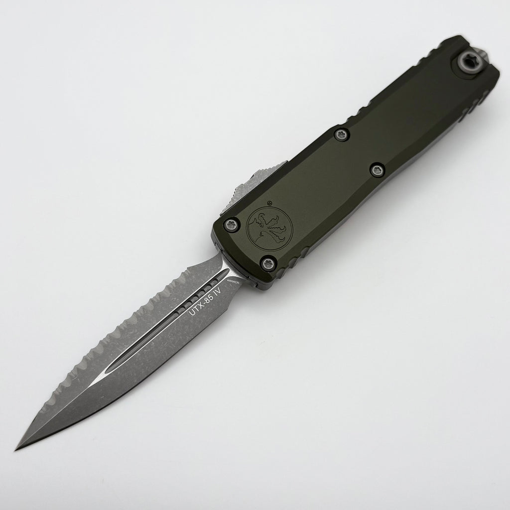 Microtech UTX-85 Gen IV w/ OD Green Handle & Full Serrated Apocalyptic D/E M390MK 12324-12APOD