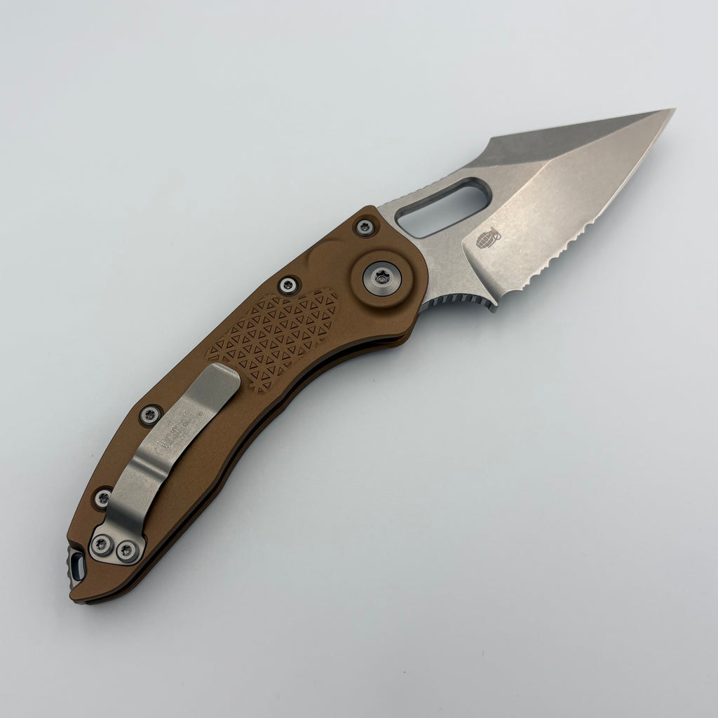 Factory Blem Microtech Borka Stitch Stonewash Partial Serrated & Brown Handles 169-11BN