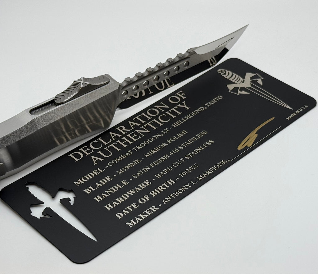 Marfione Custom Combat Troodon LT Gen III w/ Stainless Satin Handle & Mirror Hellhound