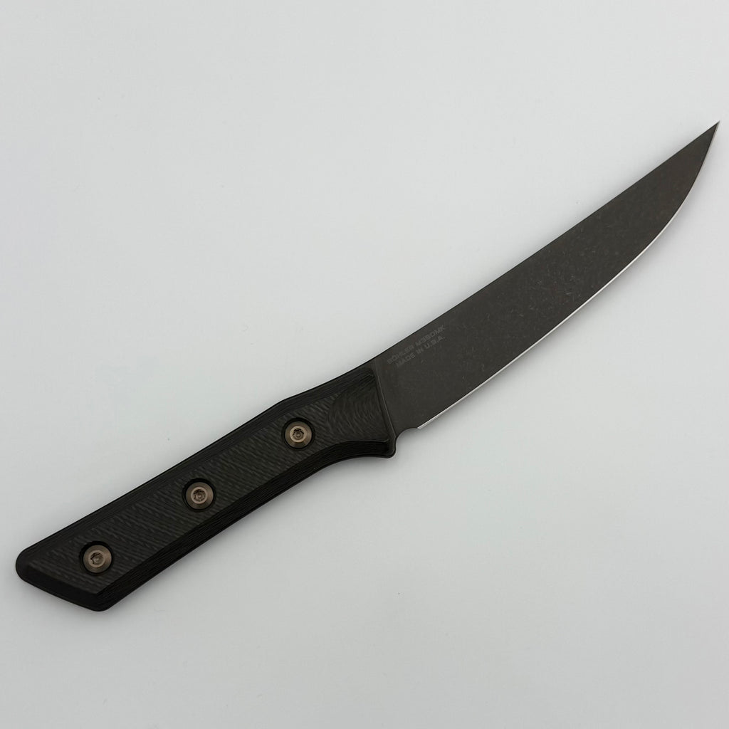 Designed for precise deboning tasks, the 6.125" Boning Knife features a narrow blade that seamlessly removes meat from bones while minimizing waste. It excels in intricate tasks such as filleting fish or trimming poultry with accuracy and control. The ergonomic G-10 handle provides comfort during demanding prep work.