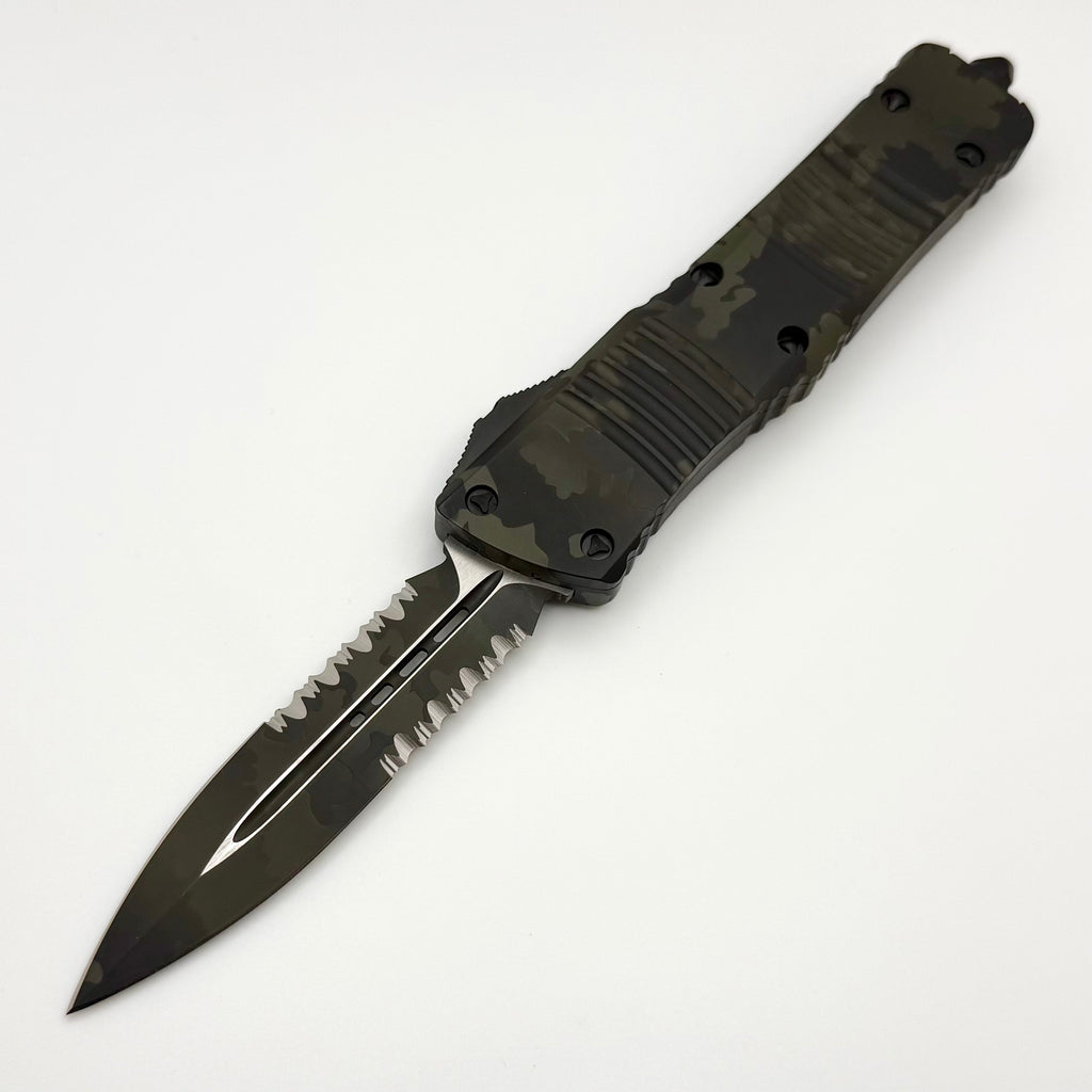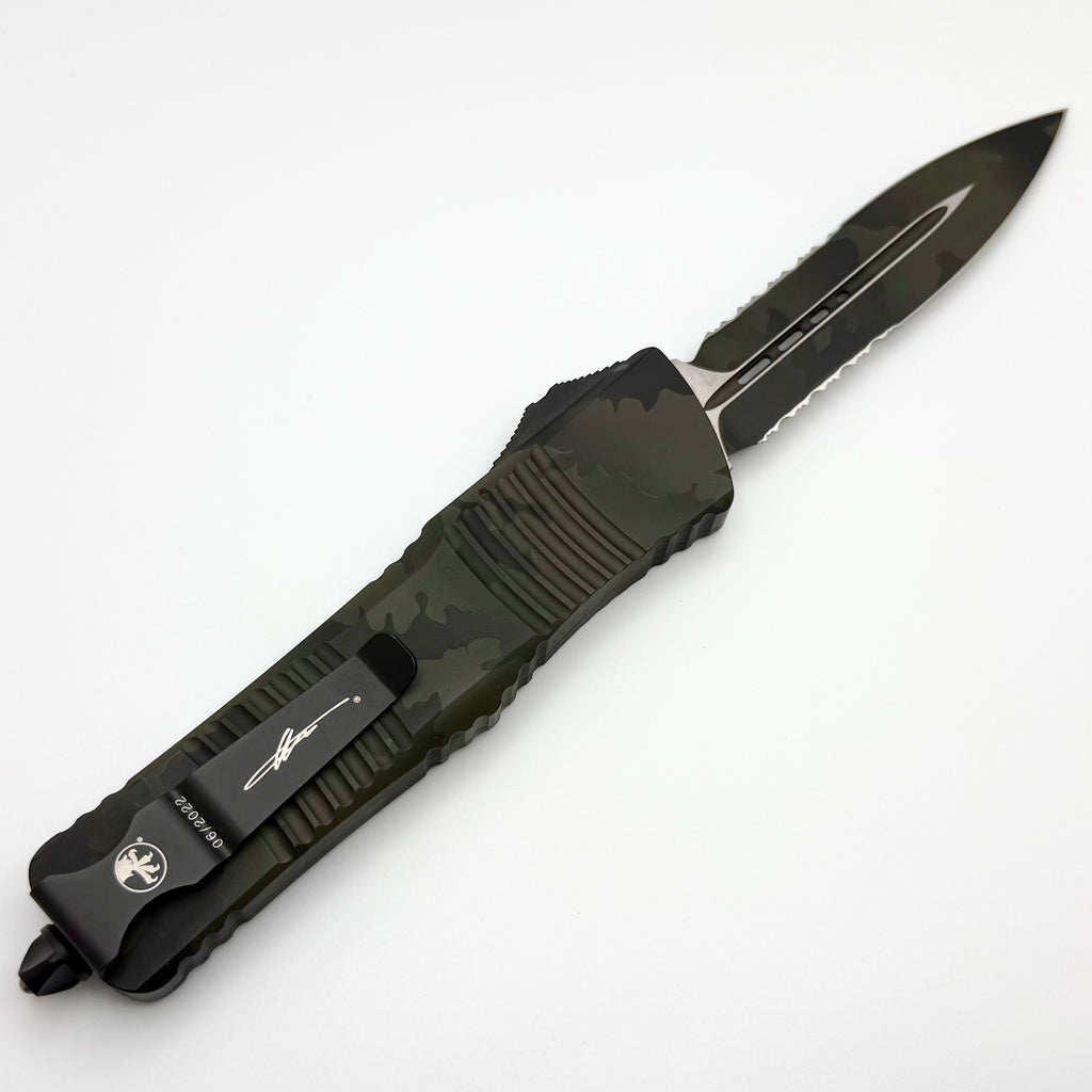 Microtech Combat Troodon Olive Camo w/ D/E Partial Serrated Signature Series 142-2OCS
