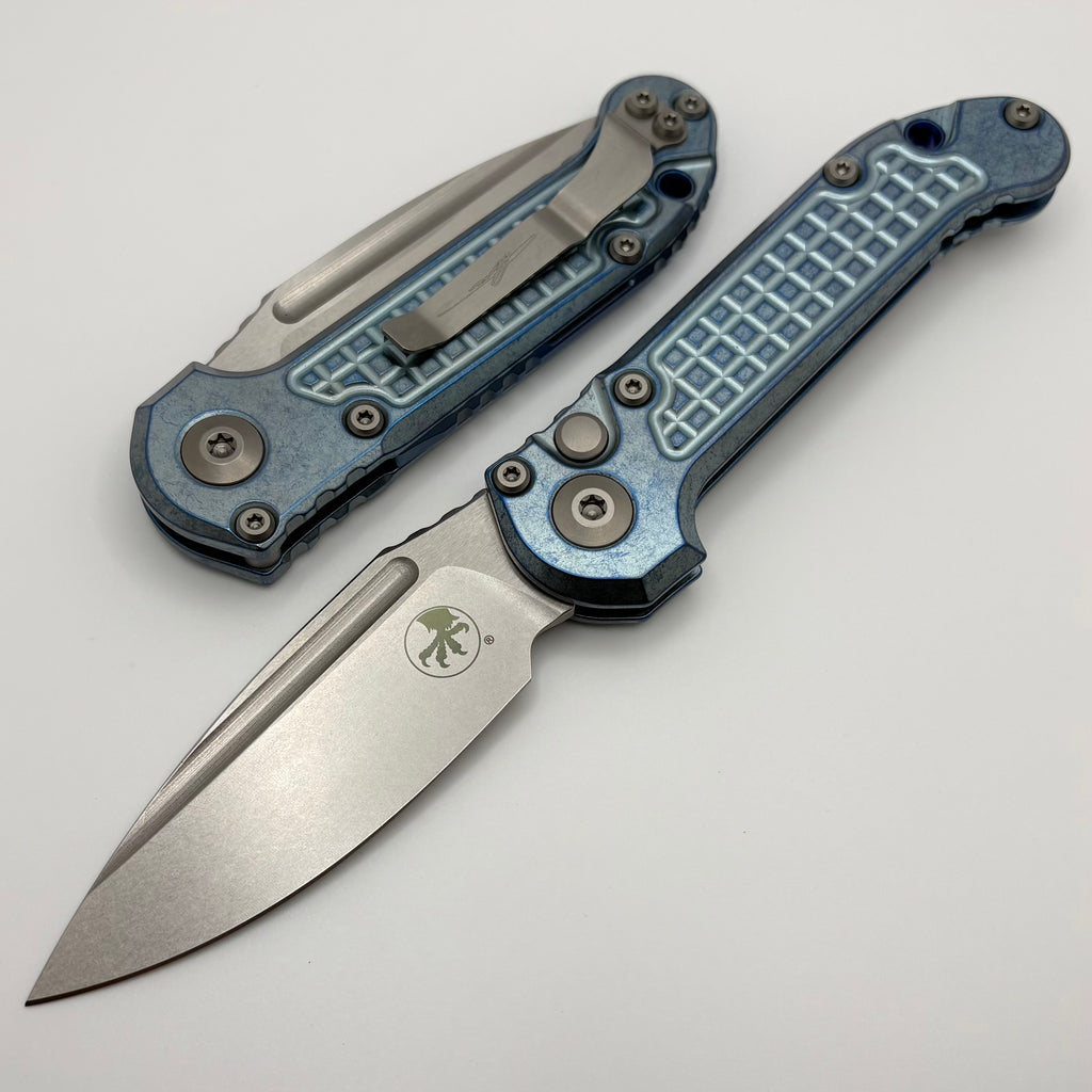 Microtech Marfione Select LUDT Gen III Ice Blue Frag Titanium Handles w/ Blue Accents & Stonewash S/E 1135-10FRMS6