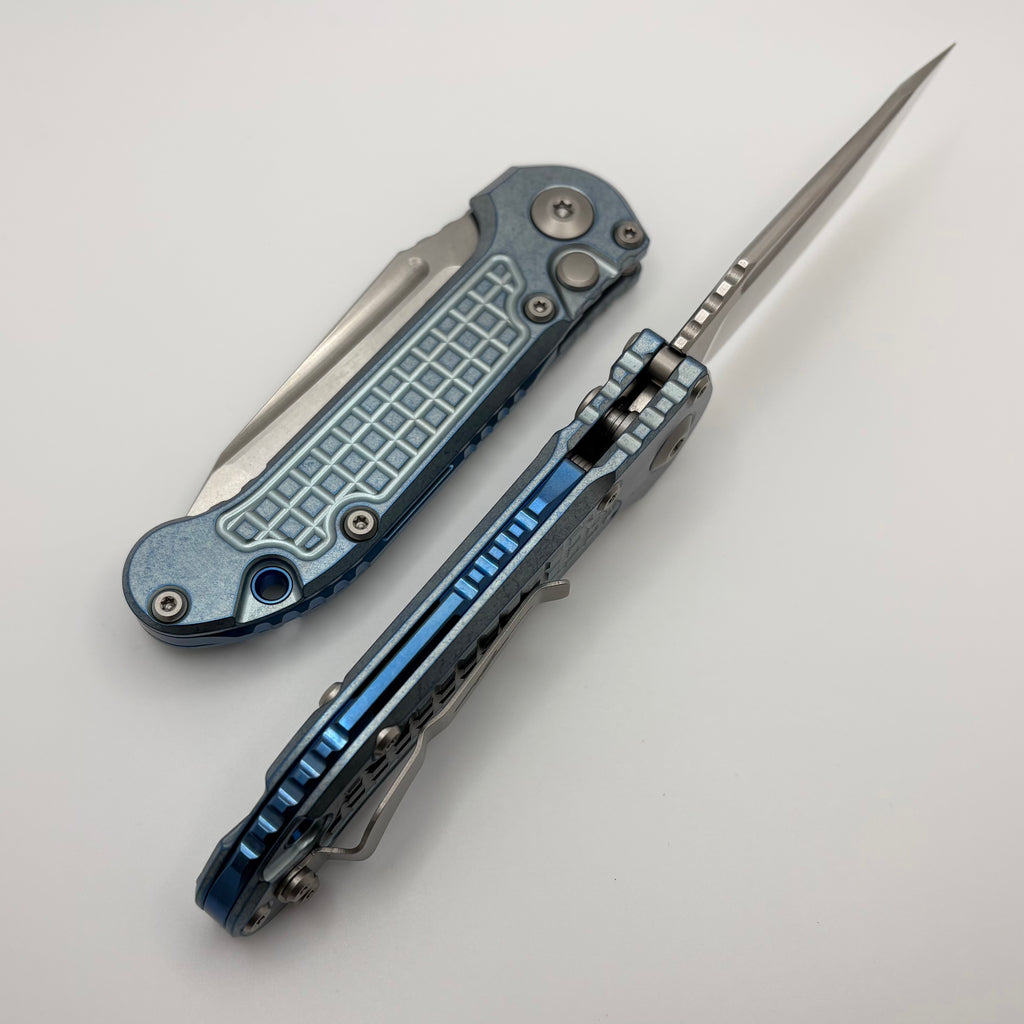 Microtech Marfione Select LUDT Gen III Ice Blue Frag Titanium Handles w/ Blue Accents & Stonewash Tanto 1136-10FRMS6