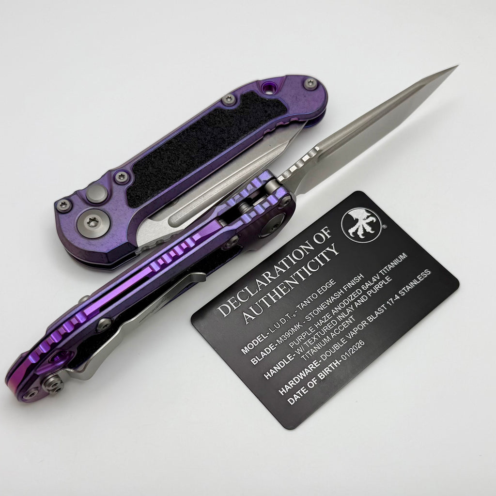 Microtech Marfione Select LUDT Gen III Purple Haze Textured Inlaid Titanium Handles w/ Purple Accents & Stonewash Tanto 1136-10MS10