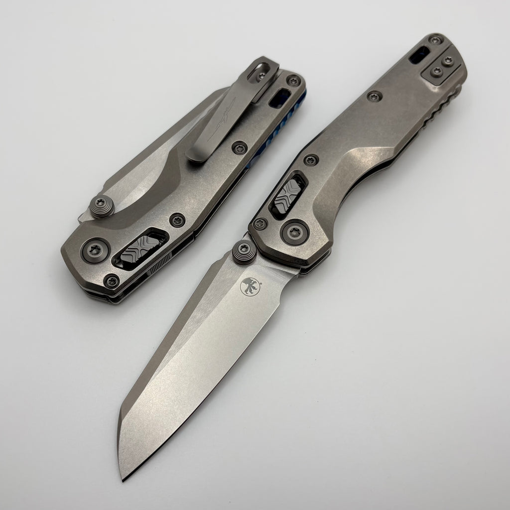 Microtech Marfione Select MSI RAM LOK Mini Slab Side Titanium Handles w/ Double Vapor Accents & Blue Accents & Stonewash M390MK 210M-10MS3