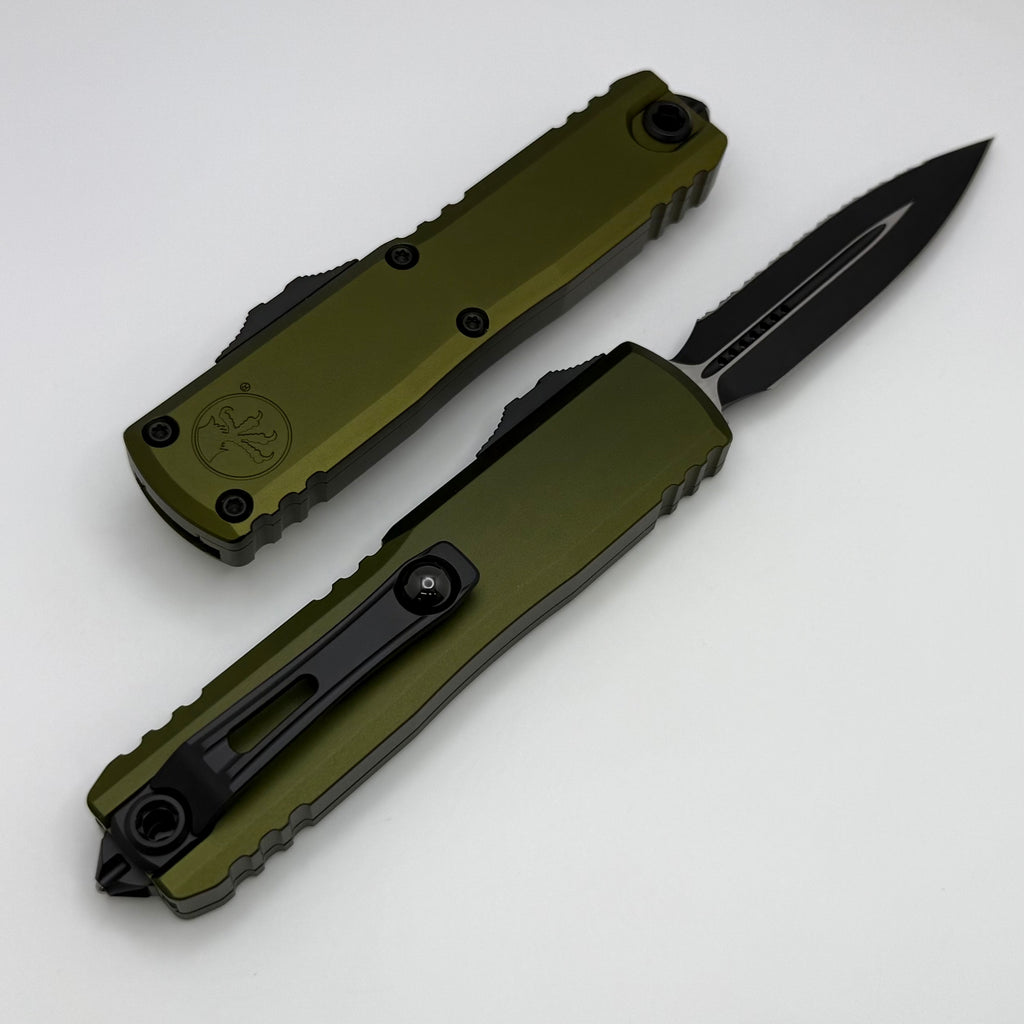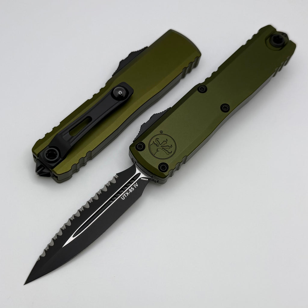Microtech UTX-85 Gen IV Black Tactical Full Serrated D/E M390MK w/ OD Green Handle 12324-3OD