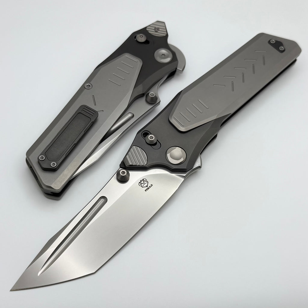 Poikilo Blade Task Cyberkuza S1 Stonewash Titanium Handles w/ Pearlescent Stonewash M398 Pattern A