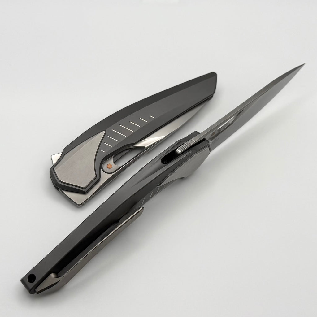 Poikilo Blade VK-Zame Shark S1 Stonewash Titanium Integral Handle w/ Crystal Ti Inlays & Pearlescent M398