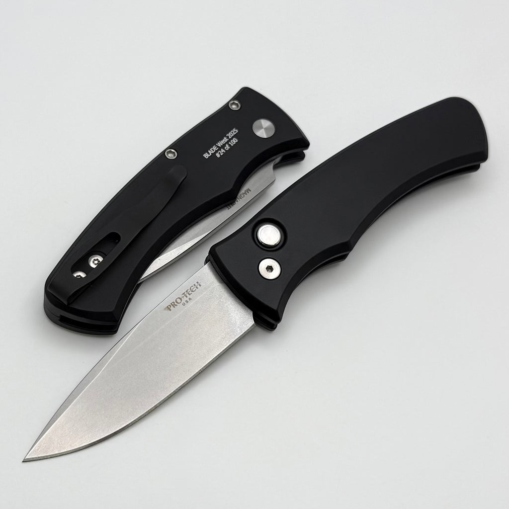 Pro-Tech Duke Black Aluminum Handle w/ Pearl Button & Stonewash MagnaCut BSW25.Duke.1