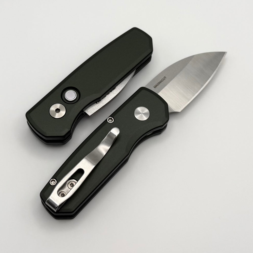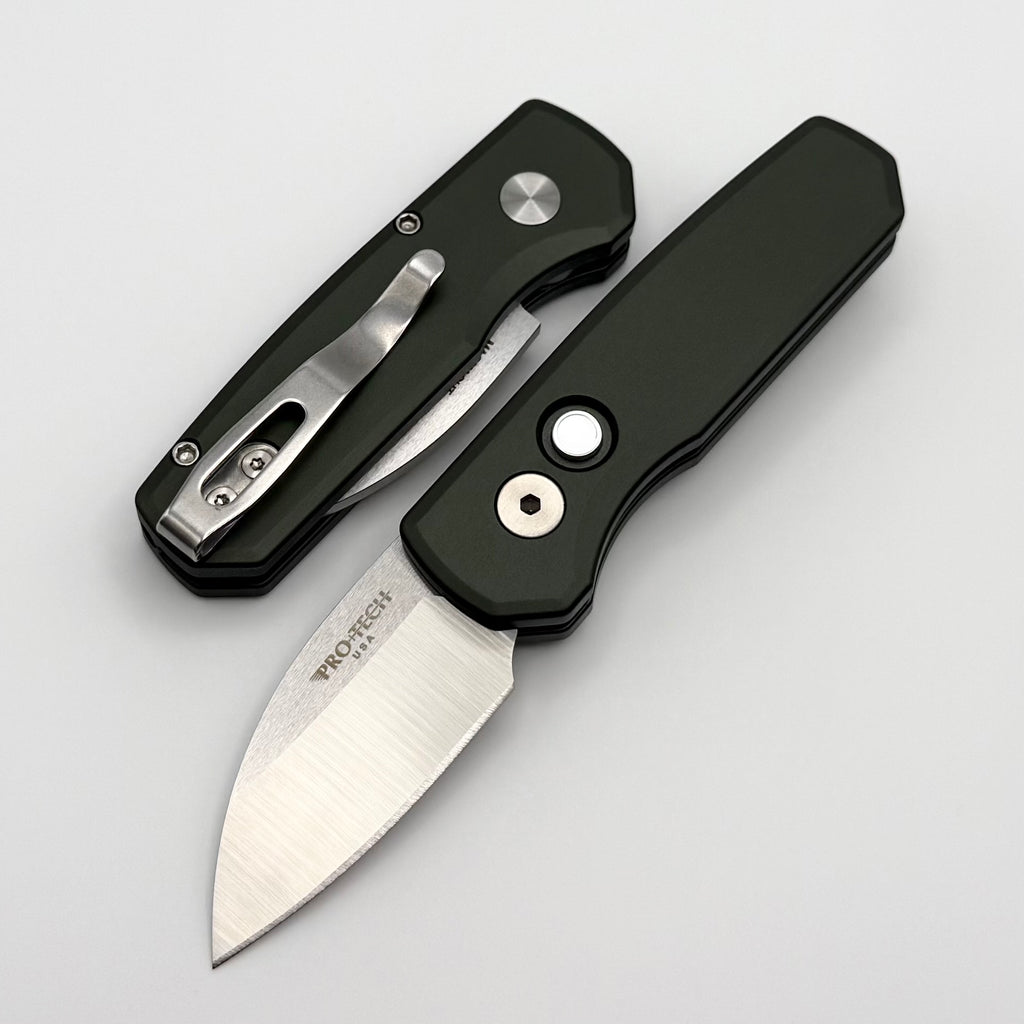 Pro-Tech Runt 5 Green Handle w/ Pearl Button & Satin MagnaCut Wharncliffe R5300-LTD Green