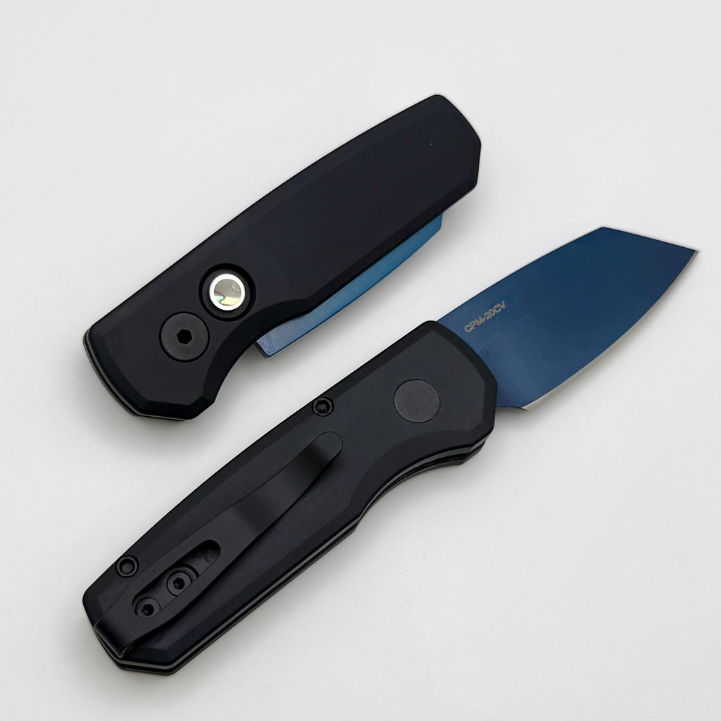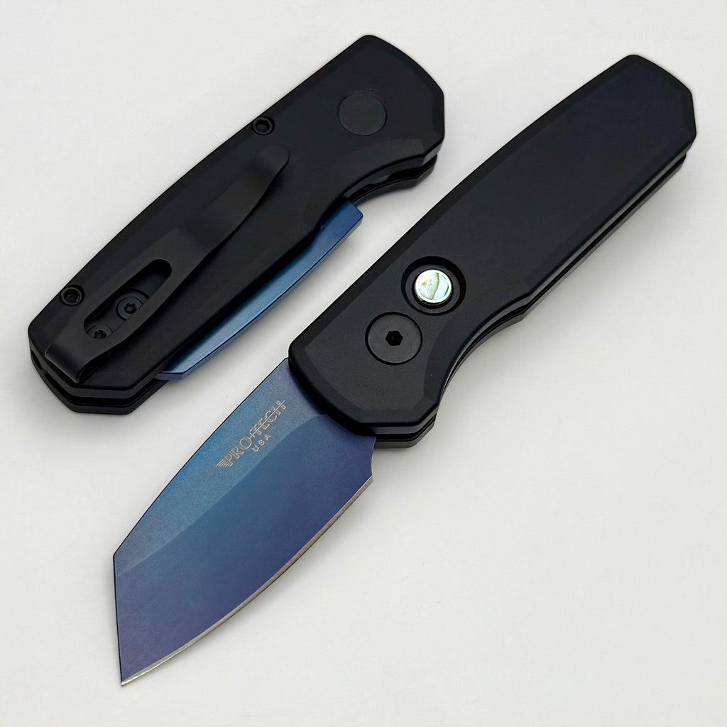 Pro-Tech Runt 5 w/ Black Handle w/ Abalone Button & Sapphire Blue PVD 20CV Reverse Tanto R5203-SB