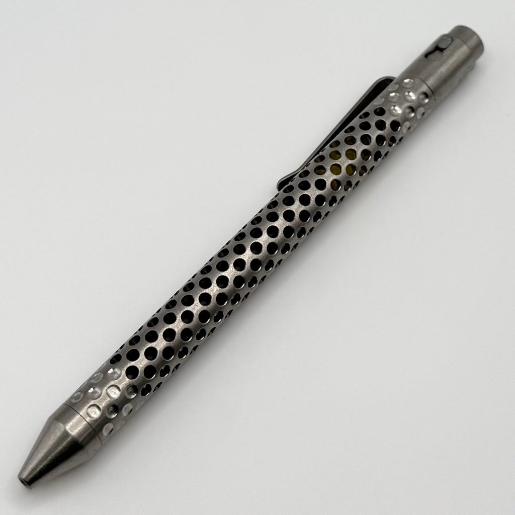 The RIP pattern has holes that go all the way through the barrel (pen body) making it the lightest pen pattern Nottingham Tactical offers.