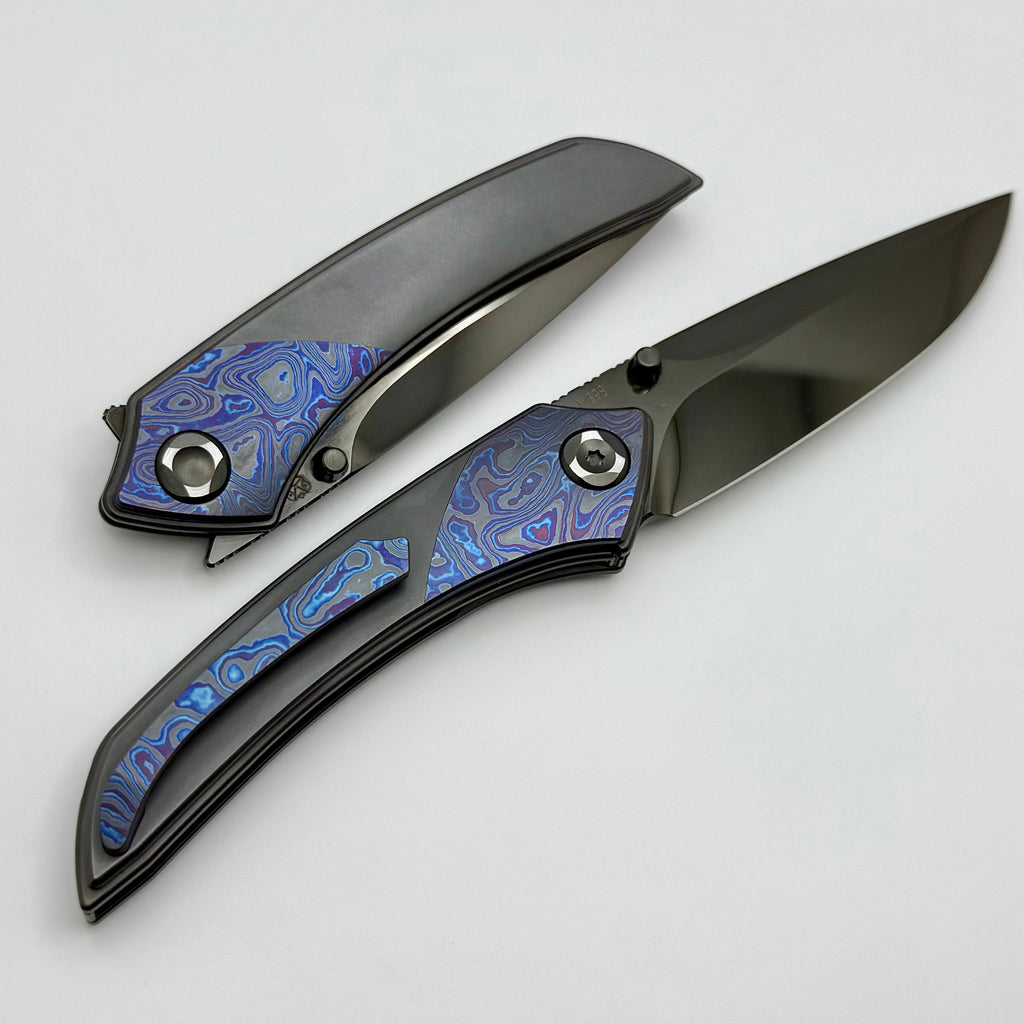 Poikilo Blade Tuna Mini Midtech w/ Titanium/ZircuTi Handles & Stonewash DLC M398