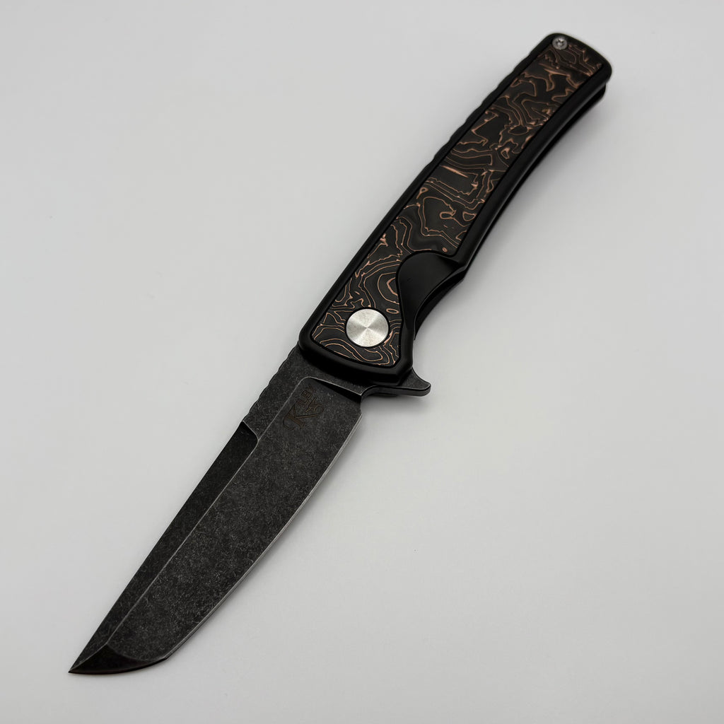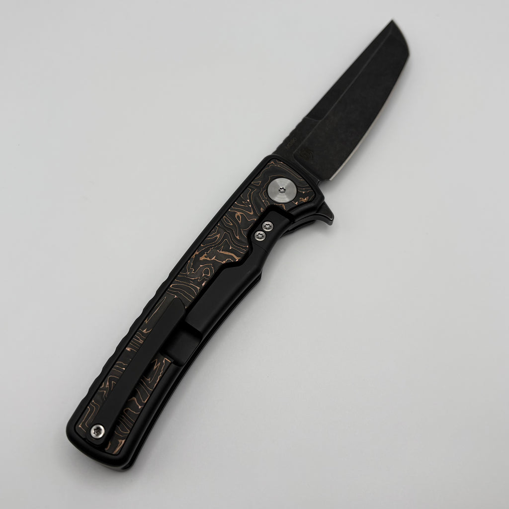 Pre-Owned Mechforce Kilby Shard Black Titanium Integral Handle w/Copper Foil Carbon Fiber Inlays & Black Stonewash M390