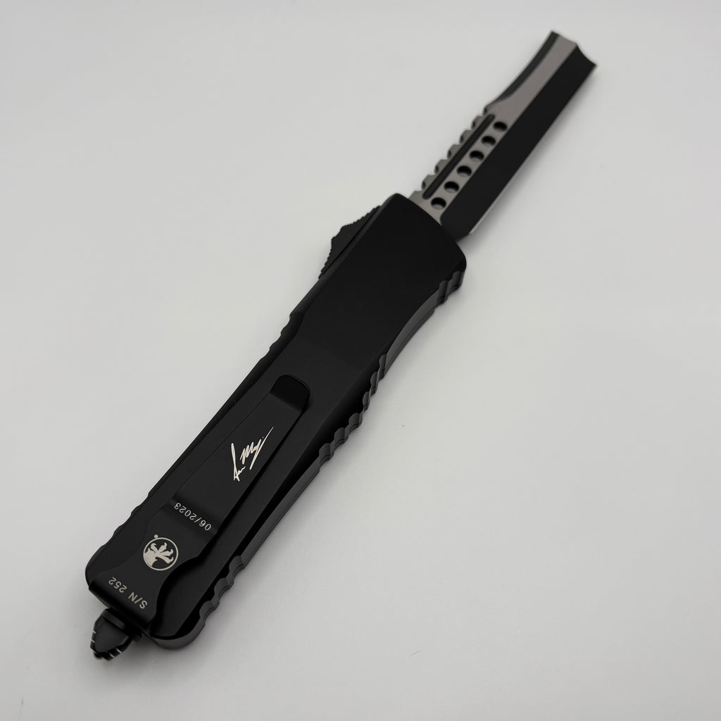 Pre-Owned Microtech Combat Troodon Hellhound Straight Razor Smooth Chassis Tactical w/ Ringed Hardware Standard Signature Series 219RS-1TS