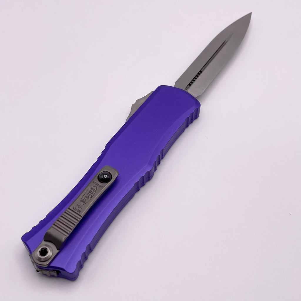 PRE OWNED Microtech Knives Mini Hera Stonewash Double Edge M390MK w/ Purple Handle 1702M-10PU