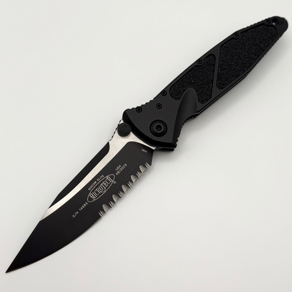 Pre-Owned Microtech Socom Elite Single Edge Manual Partial Serrated Black Tactical Standard 160-2T