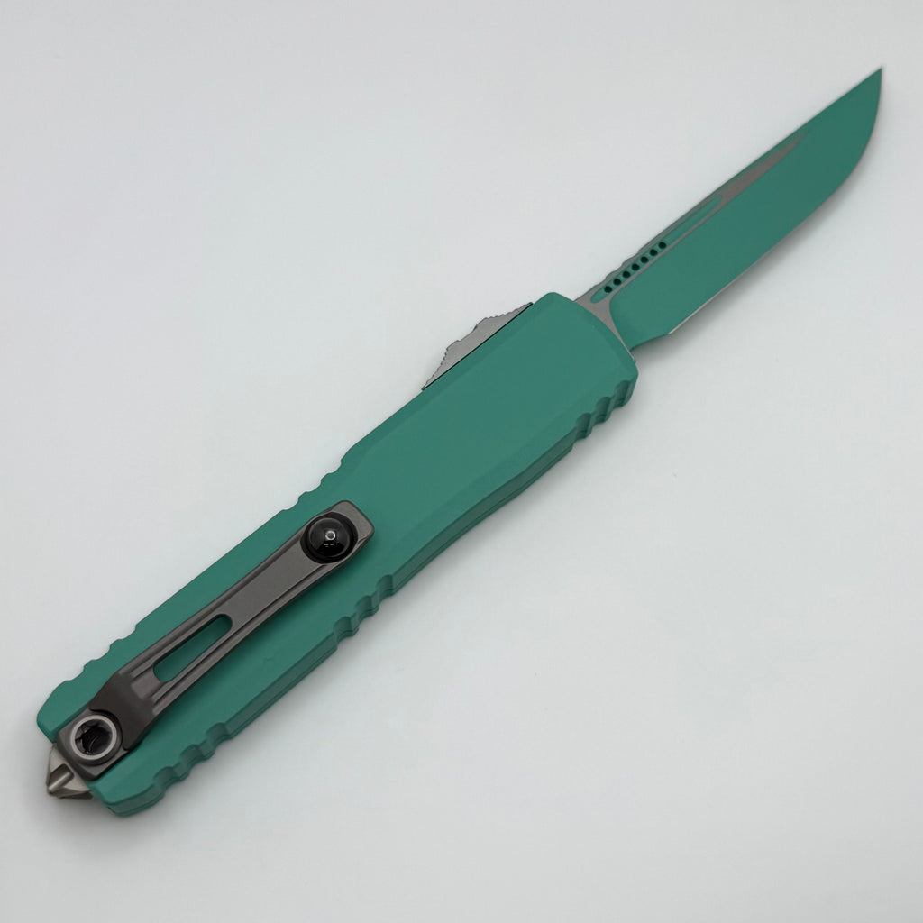 As the flagship model of the Microtech® OTF lineup, this is the final generation of the Ultratech®.  The ZBP Ultratech sets the standard for Out-The-Front technology and this one is sure to please with multiple upgrades. These Zero Blade Play Ultratech's have M390MK blades and titanium Torx hardware. They have milled titanium pocket clips with ceramic balls, and the new titanium glass breaker. The contoured chassis handle provides a lighter and more ergonomic feel and comes in a smooth, flat finish.