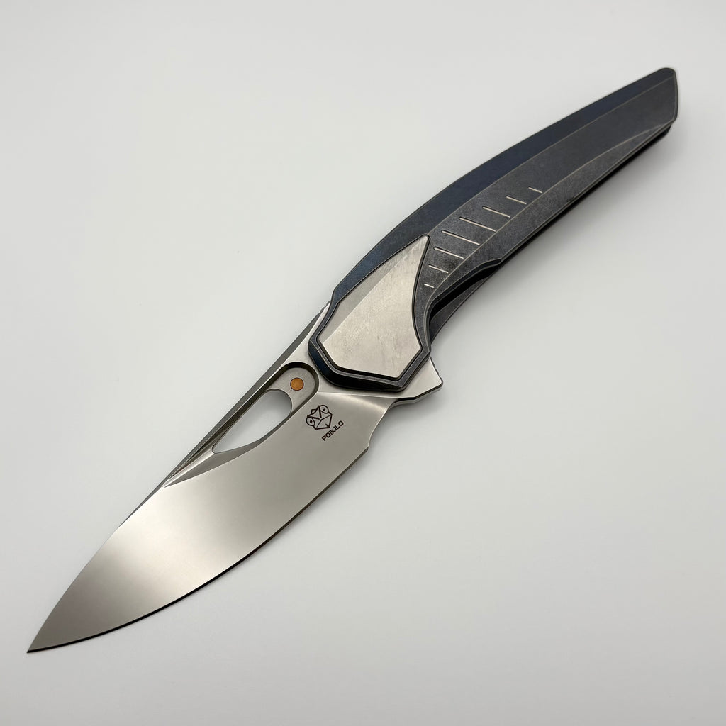 Pre-Owned Poikilo Blade VK-Zame Shark S2 Blue Stonewash Titanium Integral Handle w/ Crystal Ti Inlays & Pearlescent M398
