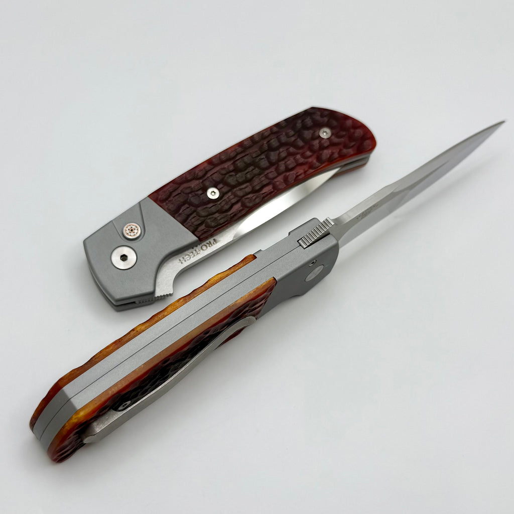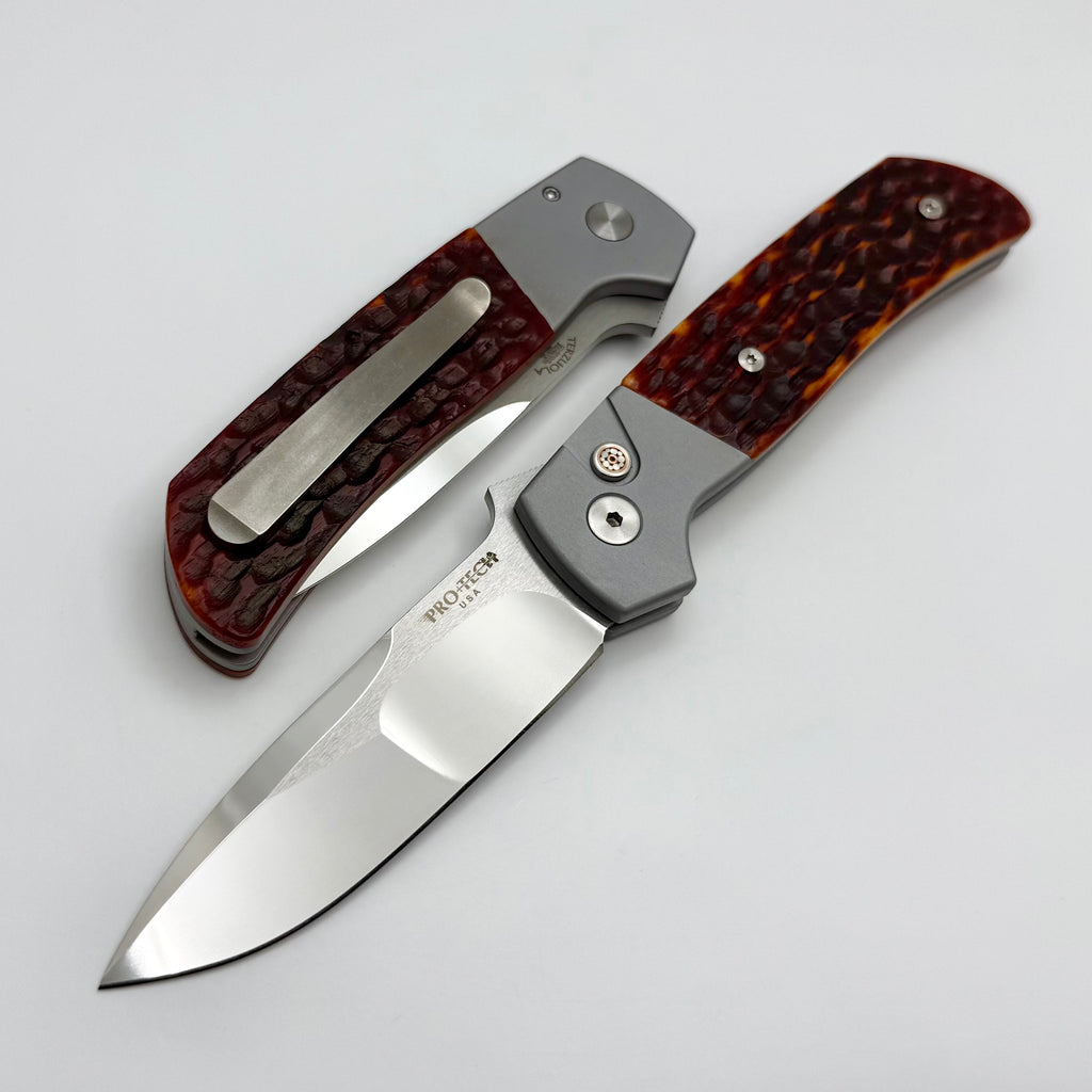Pro-Tech ATCF Gray Aluminum Handles w/ Jigged Bone Inlays & Mosaic Button w/ Hand Ground Blade 2025 ATCF Custom 003
