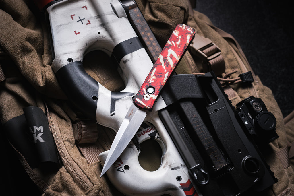 Pro-Tech Godfather w/ Crimson Tiger Camo Handle & Satin 154-CM Blade 921-Satin CTC