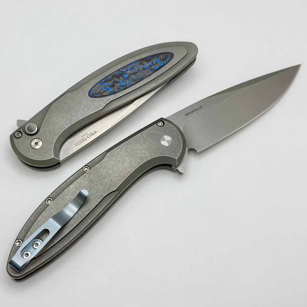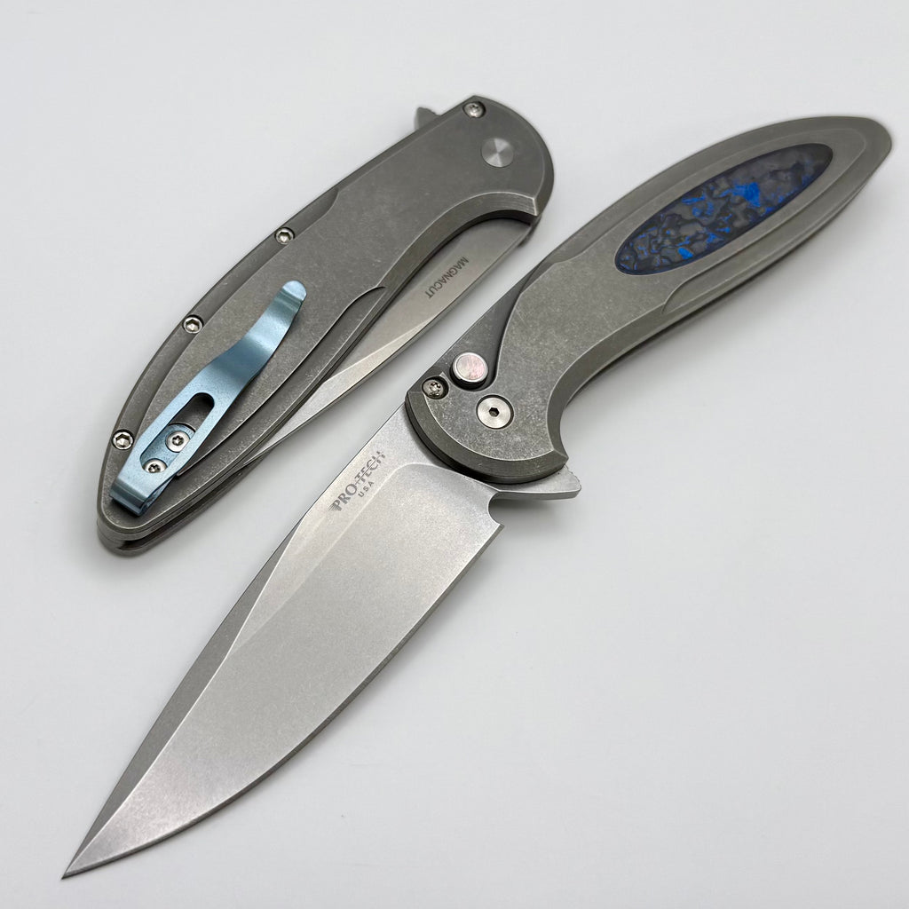 Pro-Tech Cambria Custom Manual 17-4 Steel Handles w/ Blue TechnoCarbon Inlay & Stonewash MagnaCut 2025 Custom 013