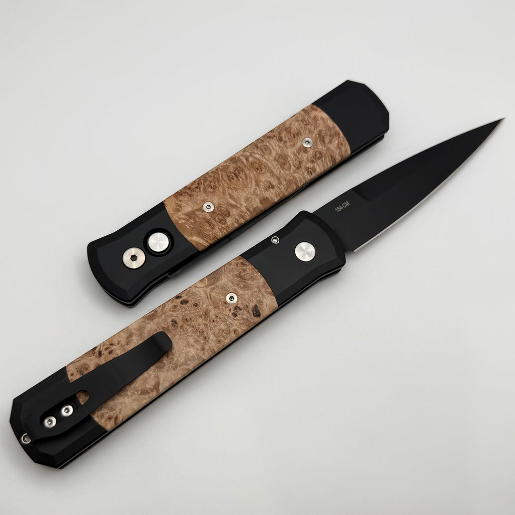 Pro-Tech Godfather Black Handles w/ Maple Burl Inlays & DLC 154-CM Blade 906