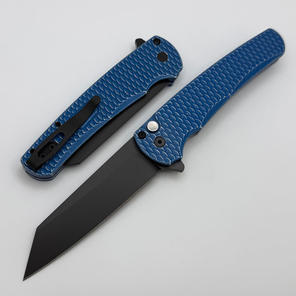 Pro-Tech Malibu Battleworn Blue Aluminum “Dragon Scale” Handle & DLC MagnaCut Reverse Tanto 5436-BW Blue LTD