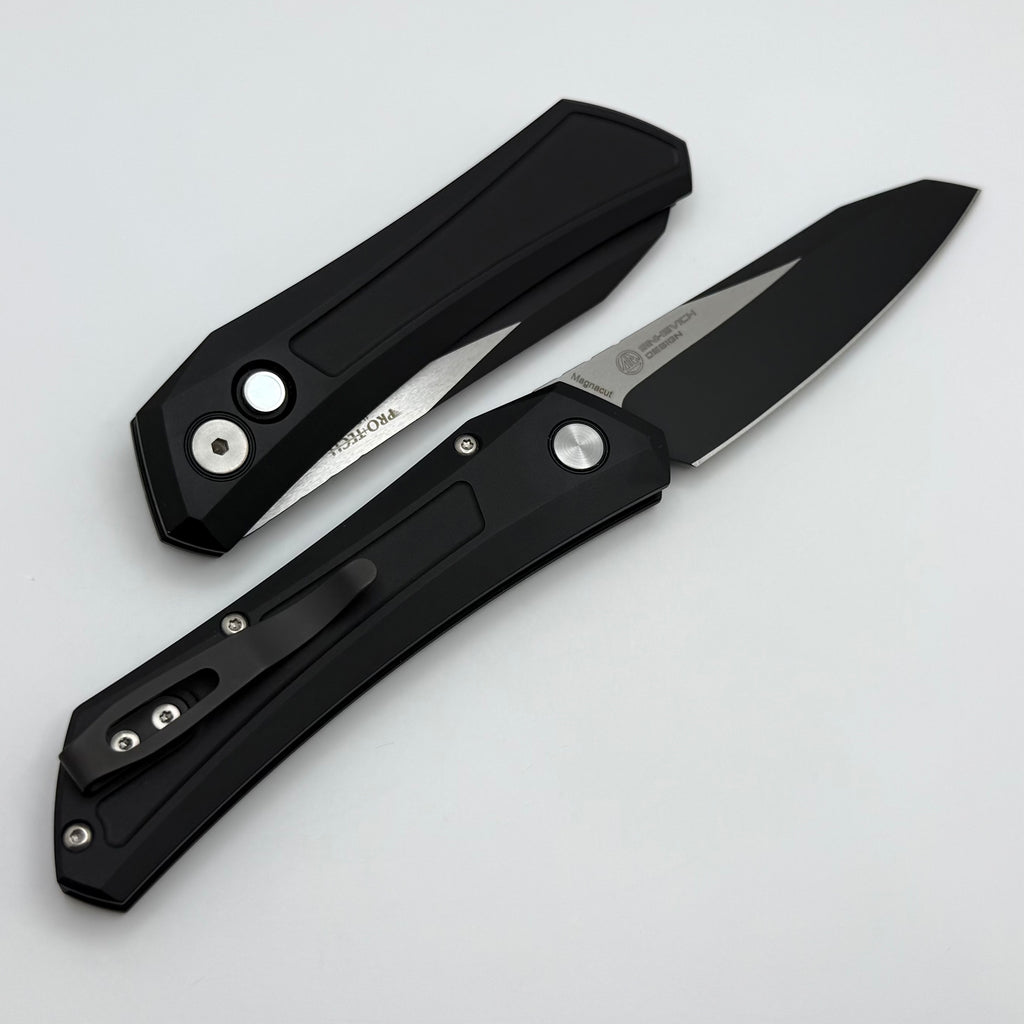 Pro-Tech Oligarch Black Aluminum Handle w/ Pearl Button & DLC MagnaCut DS103-LTD