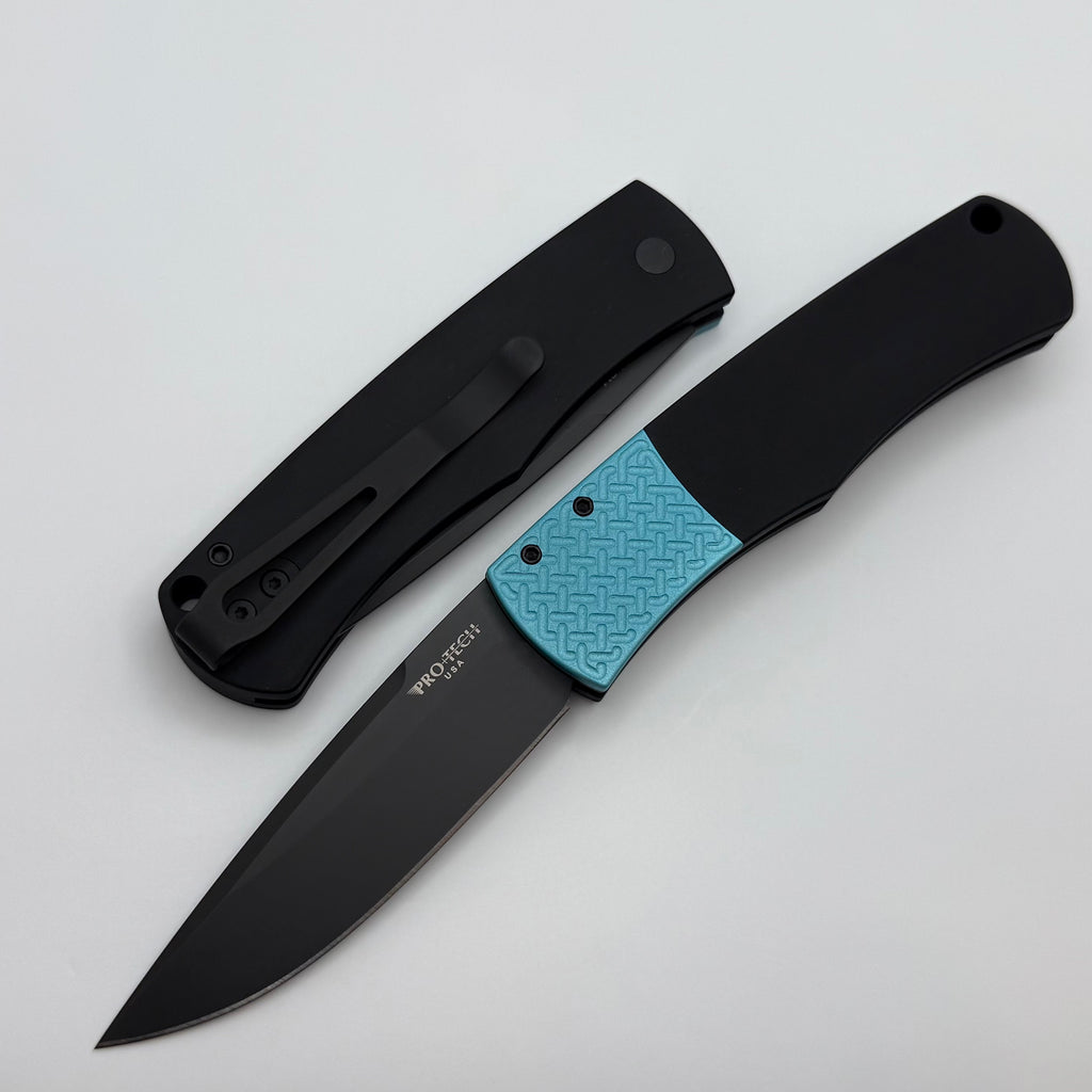 Pro-Tech Whiskers Black Handle w/ Textured Tiffany Blue Bolster Release & DLC 154CM BR-1.7 LTD-T.Blue