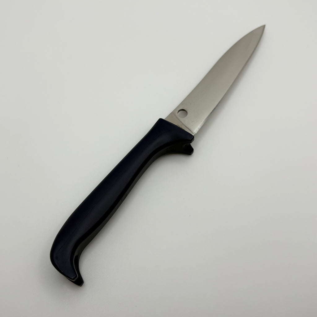 Counter Puppy® kitchen knives are a unique twist in kitchen cutlery that give a whole new meaning to the phrase “Man’s best friend.” Their injection-molded high-impact plastic handles are shaped like the stylized body and legs of a puppy. This novel design allows them to stand upright on a counter or tabletop, keeping them clean and handy while creating a truly distinctive table setting presentation. Counter Puppy designs feature full-flat-ground blades crafted from 7Cr17 stainless steel and are available with a choice of a PlainEdge™ or fully serrated SpyderEdge™ cutting edge. Their handles are available in both blue and purple.
