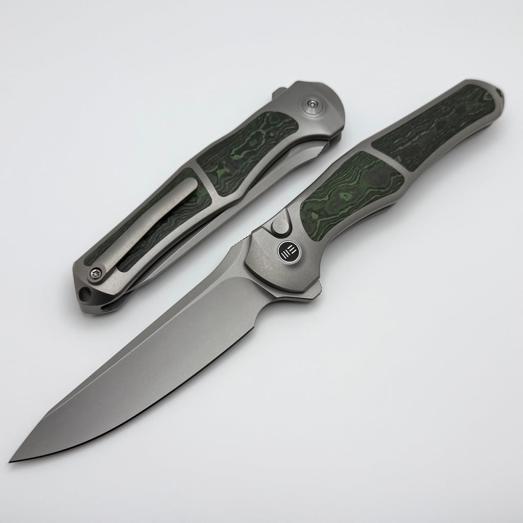 We Knife 702XI 11th Special Edition - Titanium Integral Handle w/ Jungle Wear Fat Carbon Inlays & Stonewash M390 WE07B-4