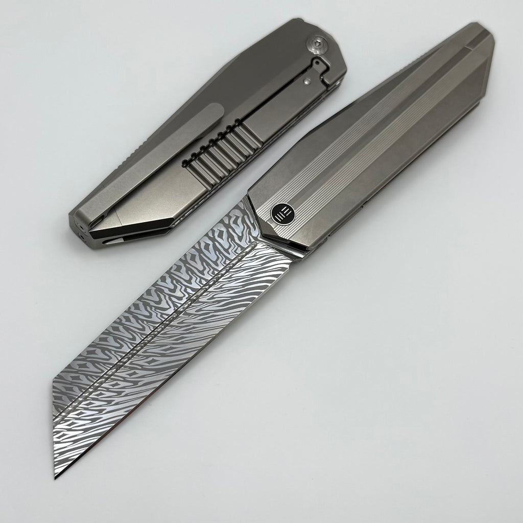 We Knife Collinear Polished Bead Blast/Satin Titanium Handle w/ Damasteel WE22034D-DS1