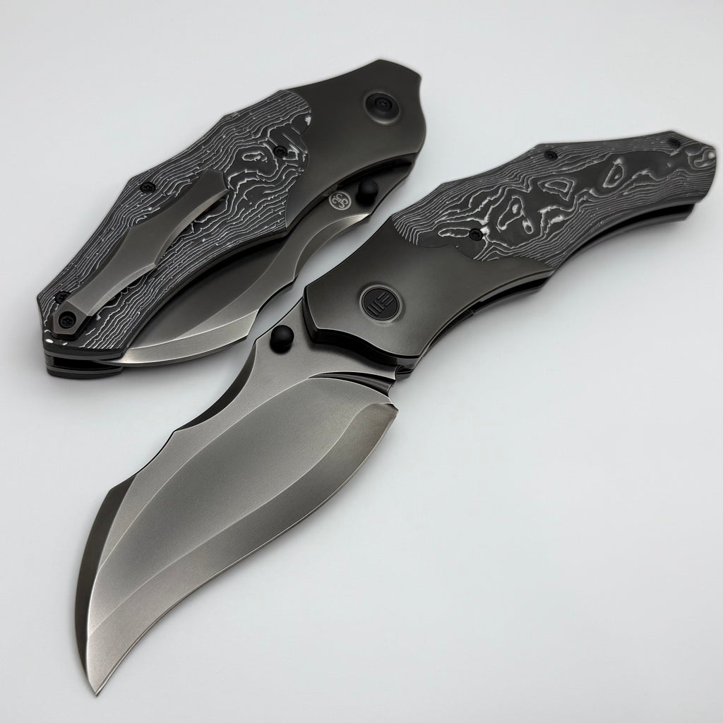 We Orc Boss Polished Gray Titanium Handle w/ Aluminum Foil Carbon Fiber Inlays & Polished Gray 20CV WE24042-3